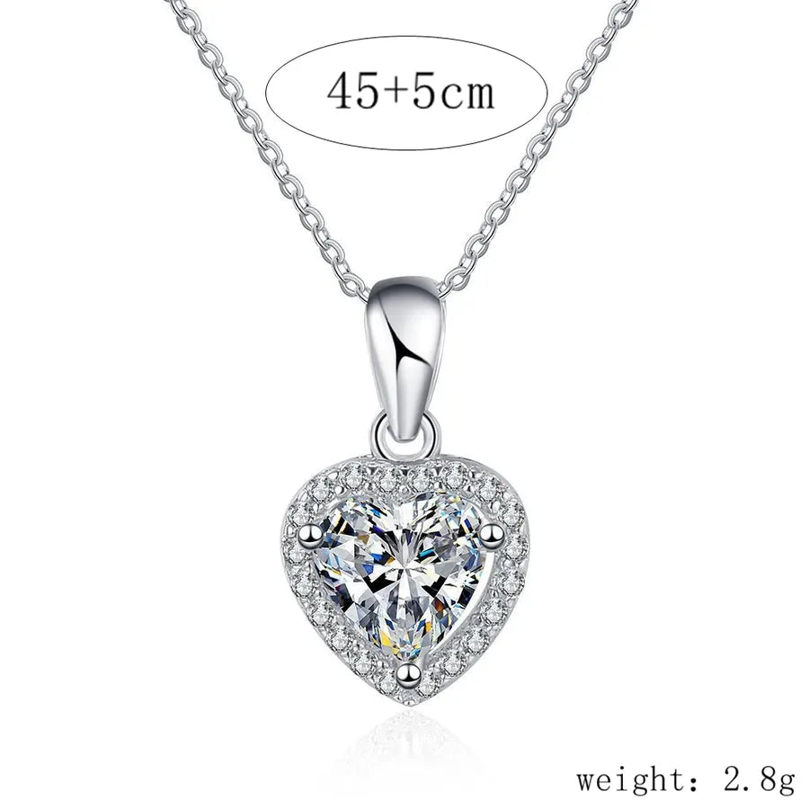 1.0ct 925 Sterling Silver Moissanite Zircon None Inlay Heart Shape Moissanite GRA Certificate Pendant Necklace