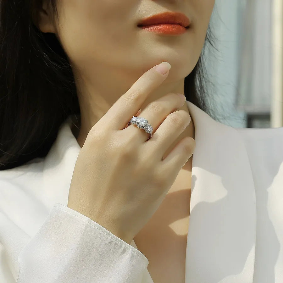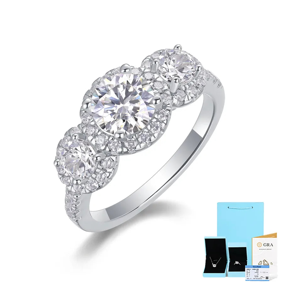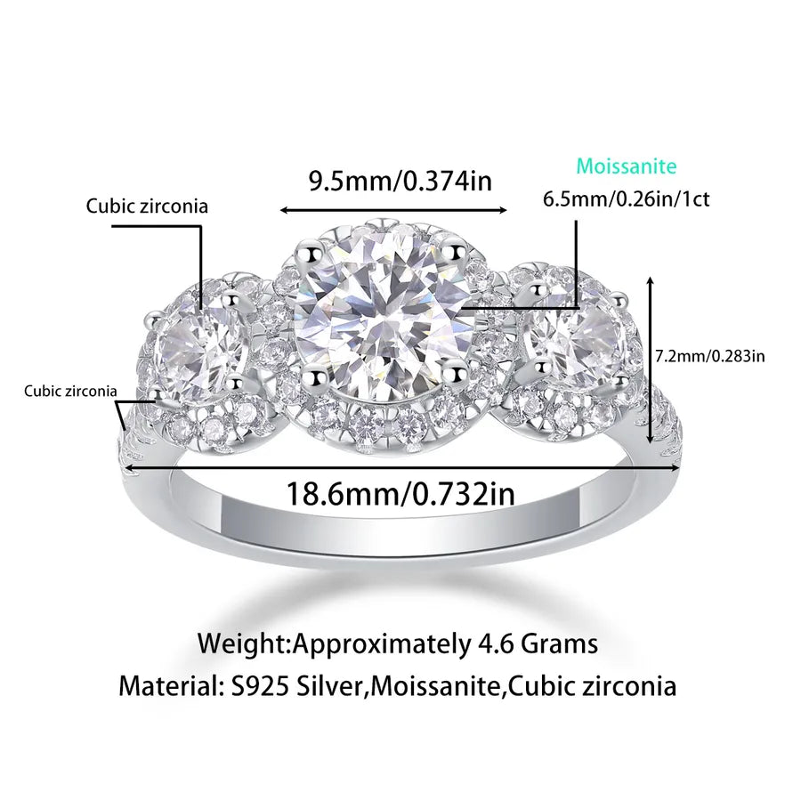 1.0ct White Gold Plated 925 Sterling Silver Moissanite Round Rings