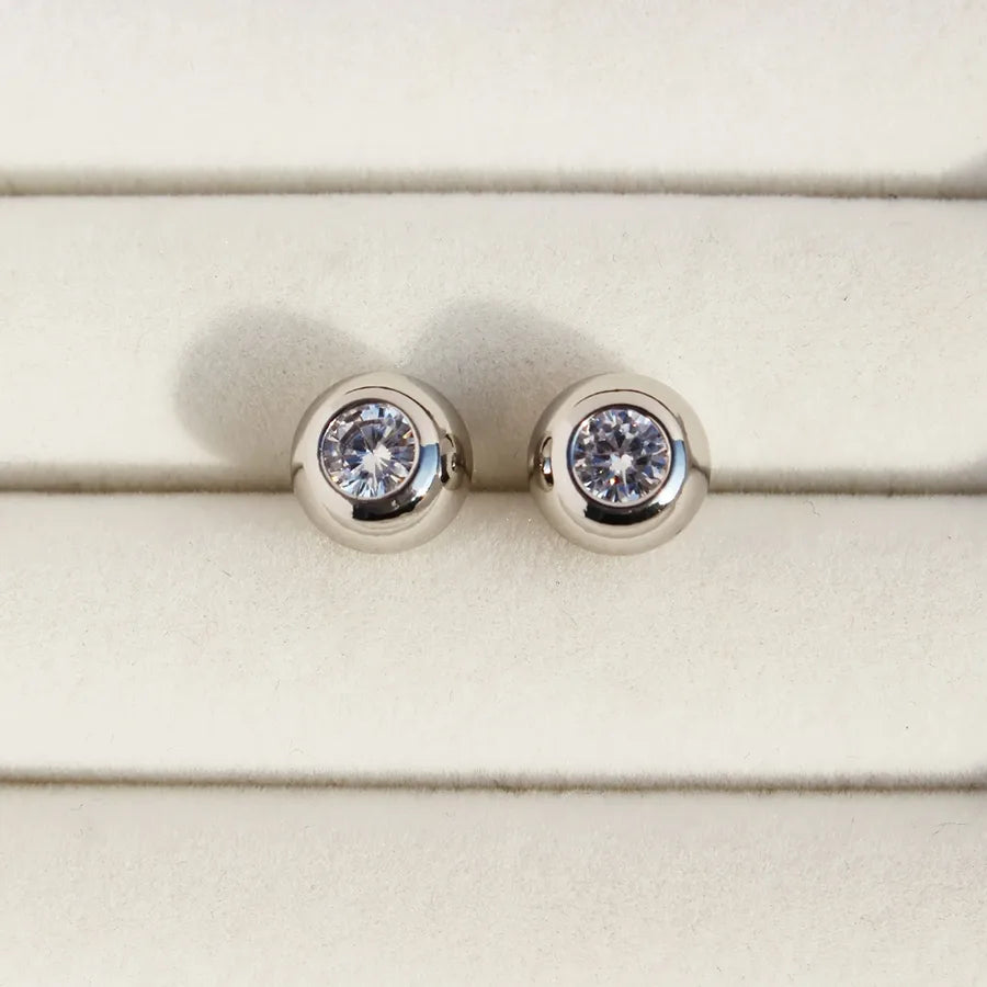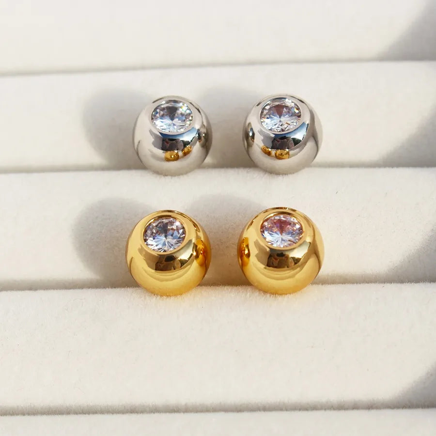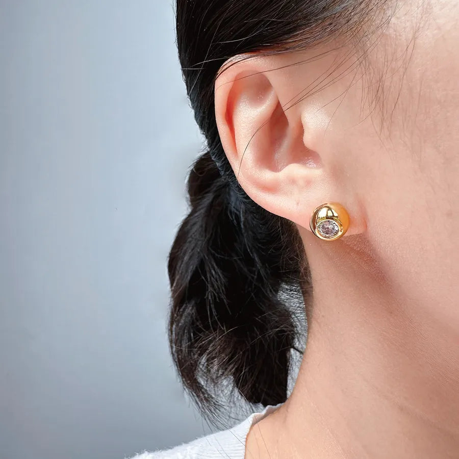 1 Pair Simple Style Classic Style Round Inlay Brass Zircon 24K Gold Plated Ear Studs