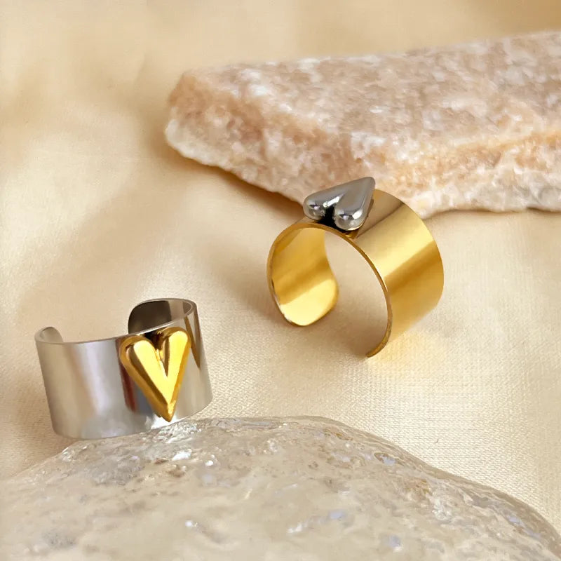 304 Stainless Steel 18K Gold Plated Elegant Glam Retro Shiny Metallic Heart Shape Open Rings