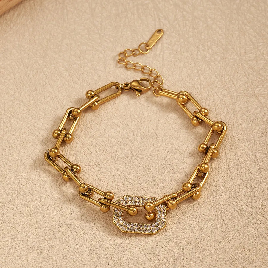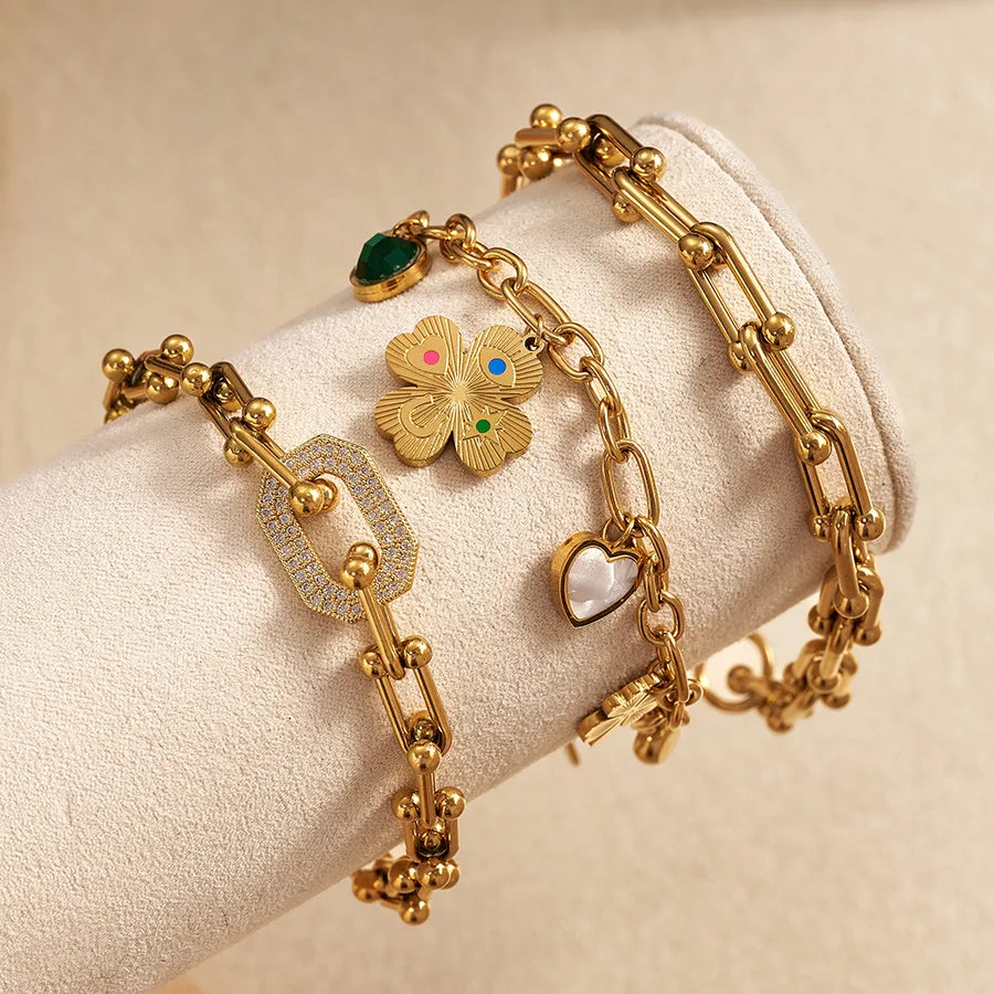 304 Stainless Steel U-Shaped Horseshoe Chain Bracelet Gold Plated Devil Eye Heart Shaped Pendant Casual Minimalist Style Lobster Clasp