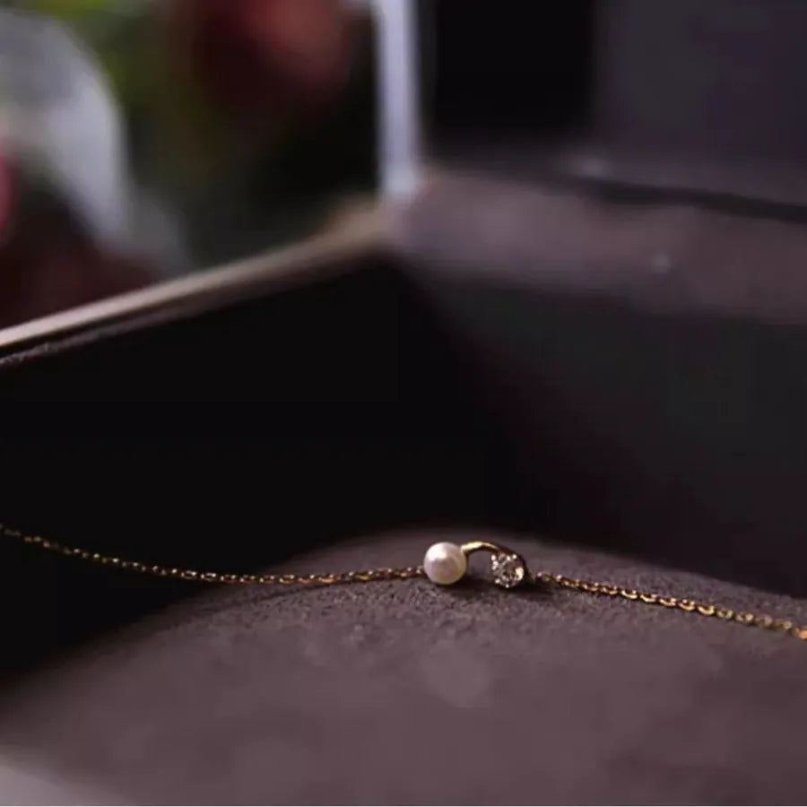 925 Sterling Silver Pearl Zircon cable chain Inlay Geometric Necklace