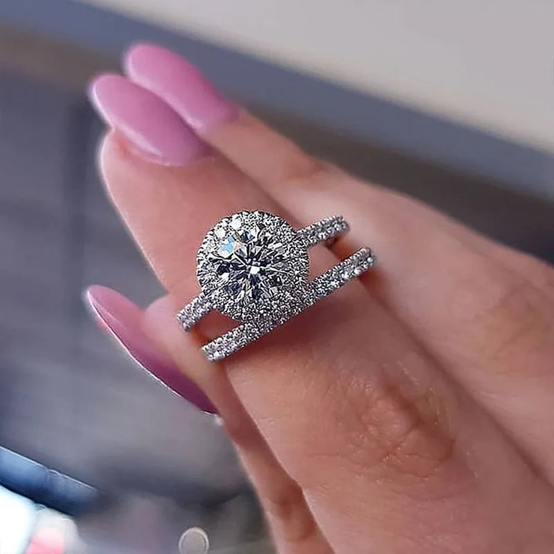 Elegant Diamond Embedded Zirconia Engagement Ring Set Two-Piece Fashionable OL Women's Ring Stylish Versatile White Enhancing Simple