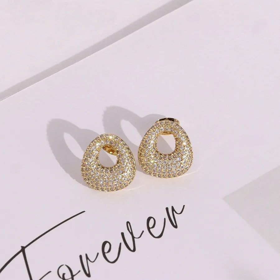 Elegant Oval Full Zircon Earrings For Women Geometric Versatile High-End Feeling Style Fashion Jewelry