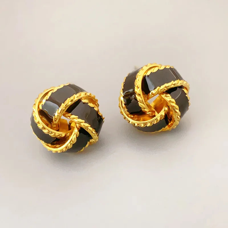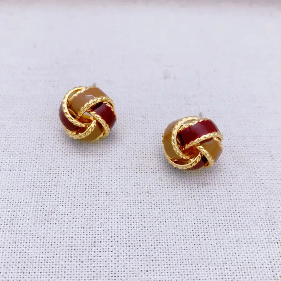 Fashionable Small Rope Knot Earrings Gold Plated Copper Enamel Drop Oil 925 Silver Needle Lightweight Luxury Women's Jewelry