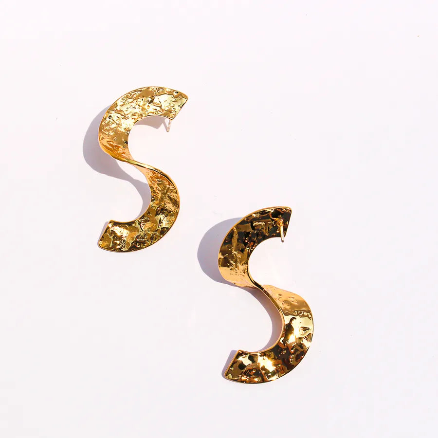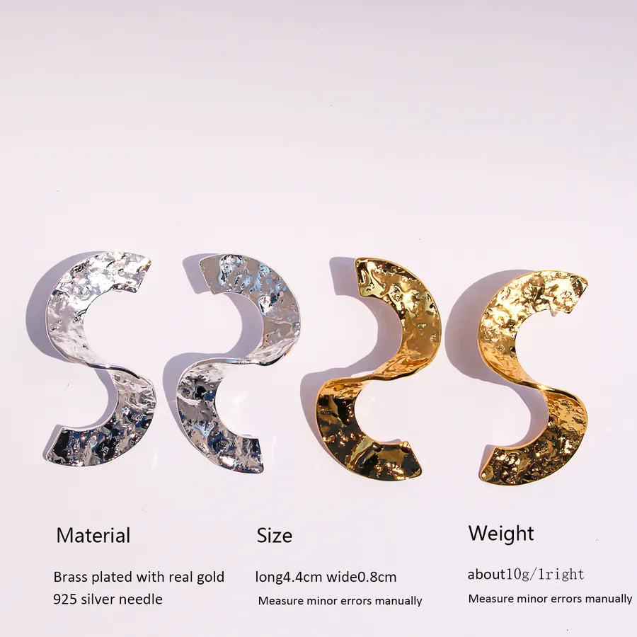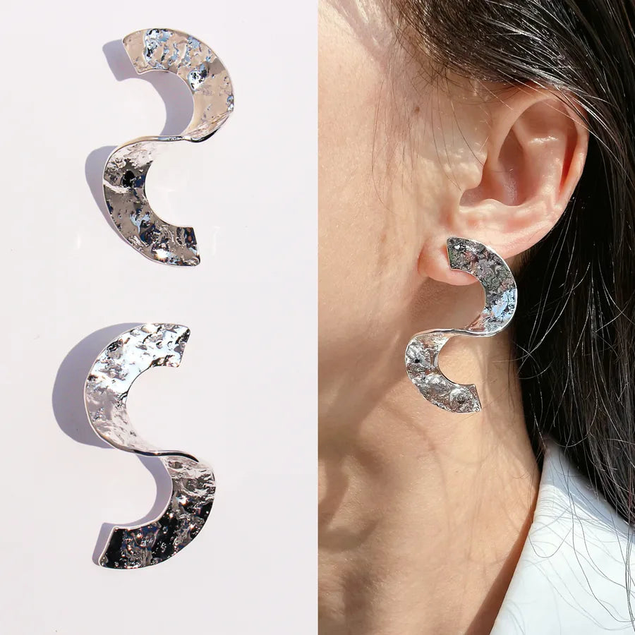 Handmade Textured Hammered Geometry Line Earrings Casual Style Unisex Spiral Metal Wind Earring Street Fashion Ear Jewelry