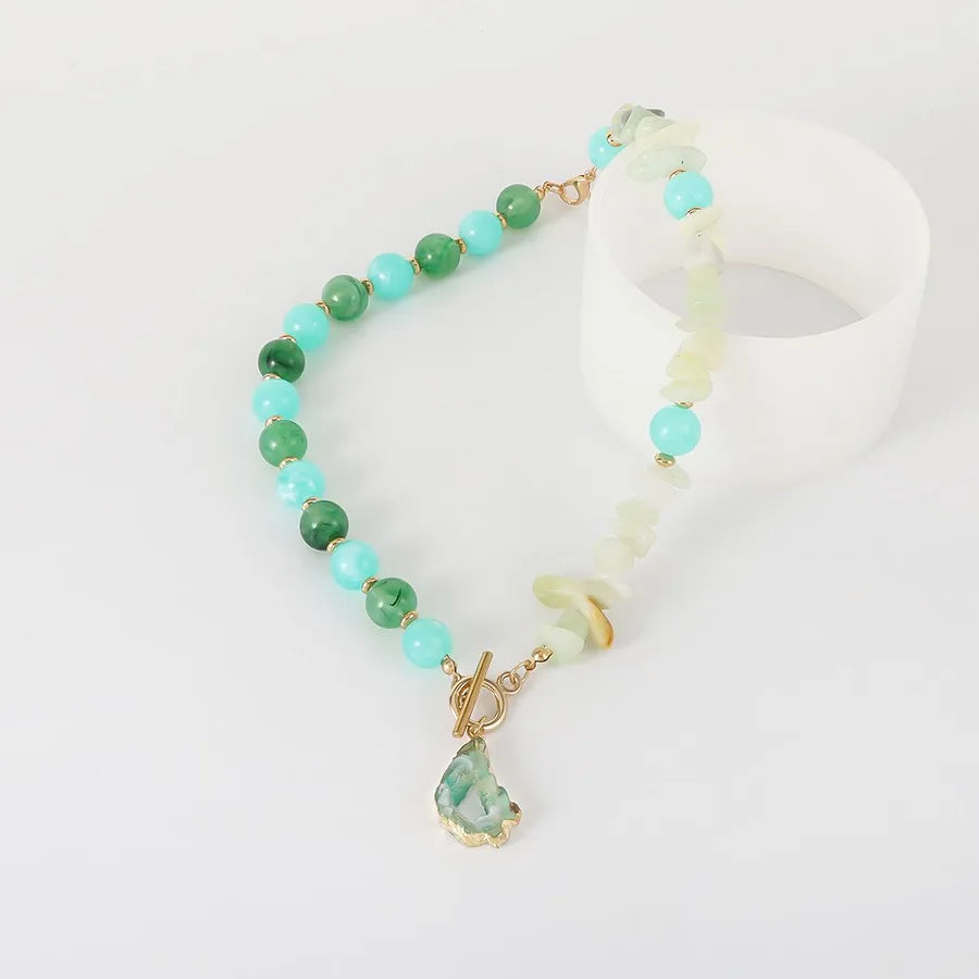 Irregular Stone Beaded Necklace OT Buckle Pendant Women's Personalized Jewelry NK24090 Fashionable Geometric Plated Plastic