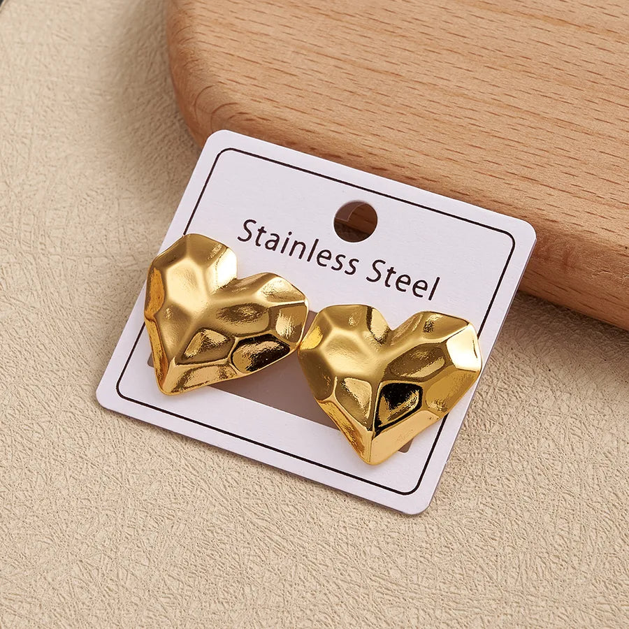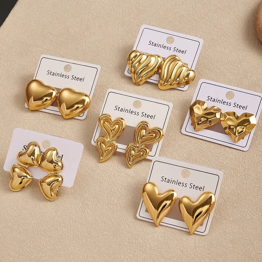 Love Heart Shaped Stainless Steel 304 Earrings Electroplated Fashionable Casual Minimalist Style Women's Jewelry Accessories