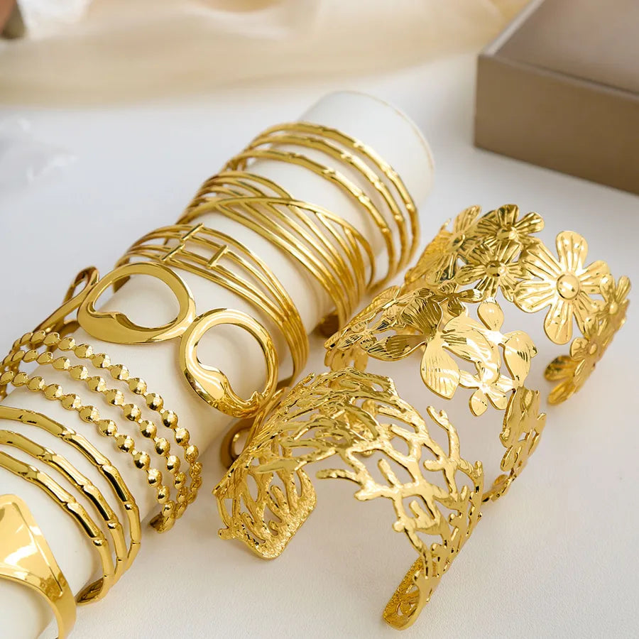 Oversized Flower Chrysanthemum 304 Stainless Steel 18K Gold Plated Bangle In Bulk