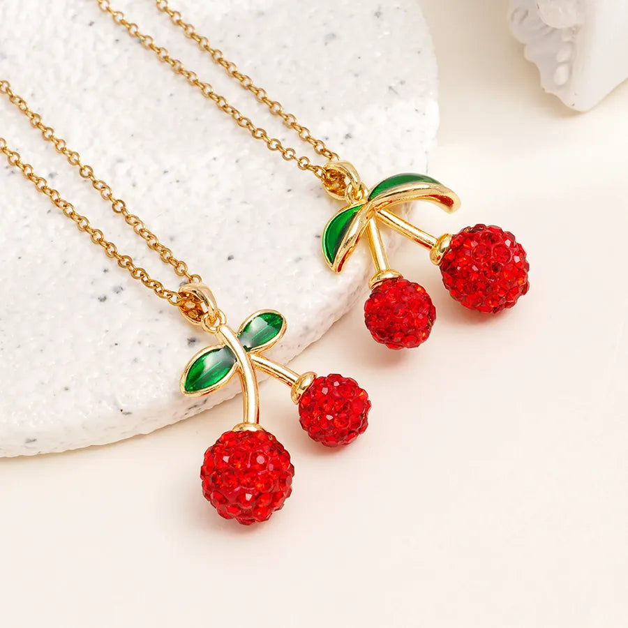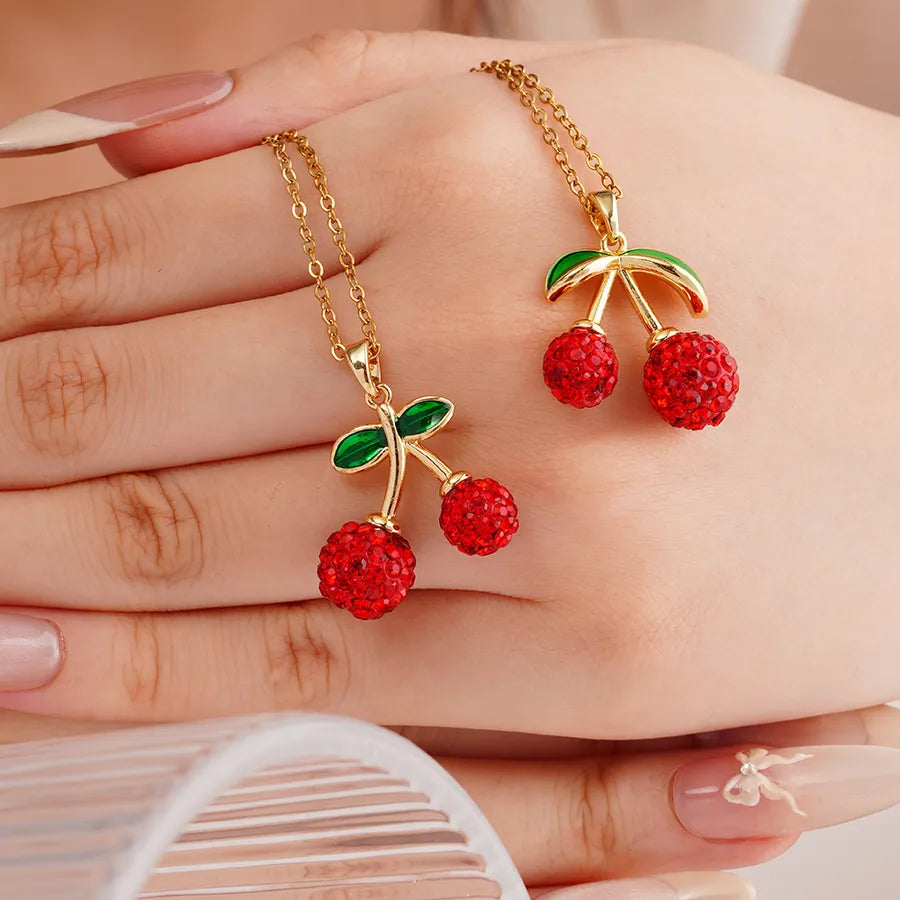 Red Cherry Pendant Necklace For Women Stainless Steel Lockbone Chain Fashion Jewelry Accessory Style