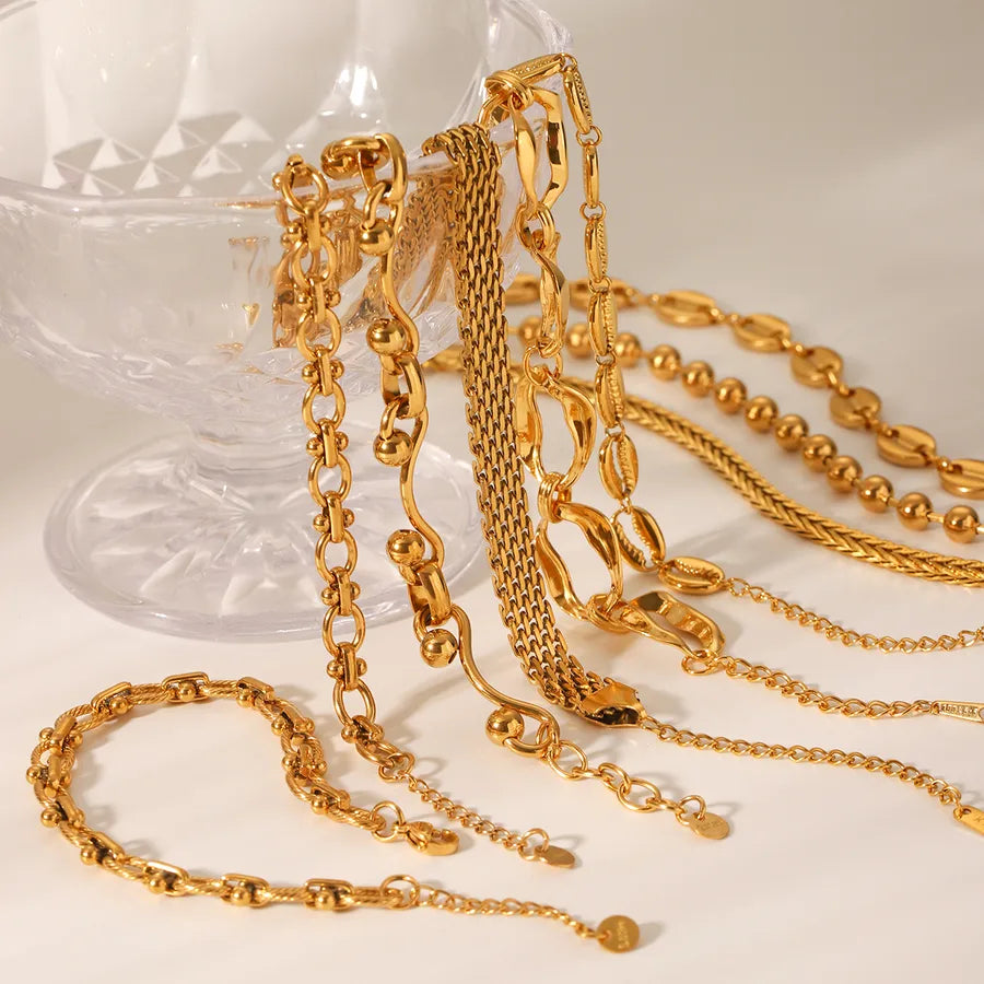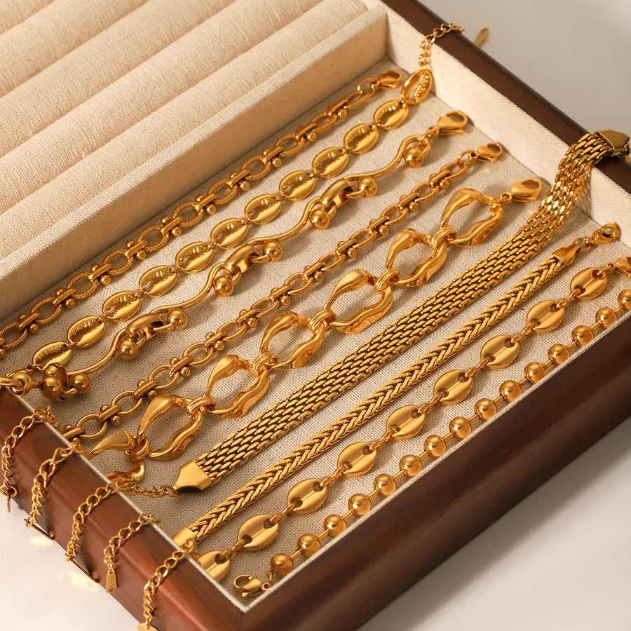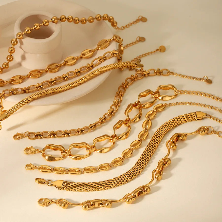 Simple Style Geometric 304 Stainless Steel 18K Gold Plated coffee bean chain ball chain Bracelets In Bulk