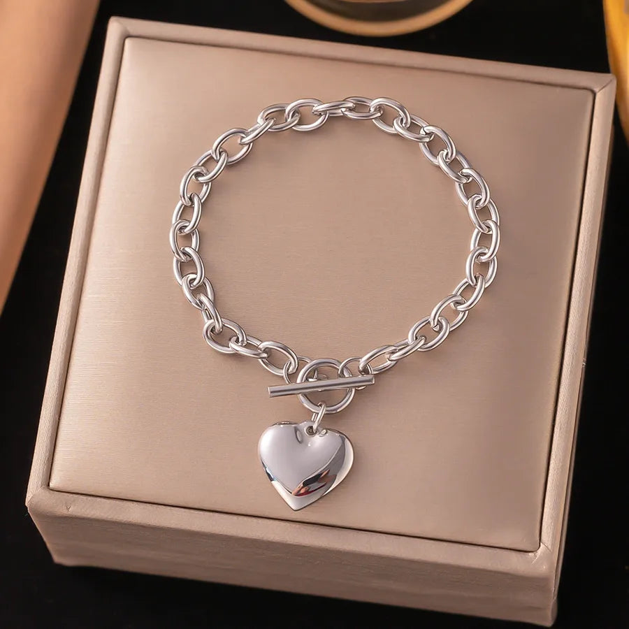 Simple Style Heart Shape 304 Stainless Steel 18K Gold Plated Artificial Rhinestones Bracelets In Bulk