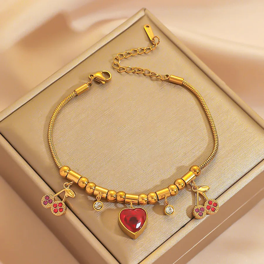 Titanium Steel Cherry Love Heart Shaped Bracelet Women's Simple Elegance Trendy Hand Jewelry Fashion Accessories