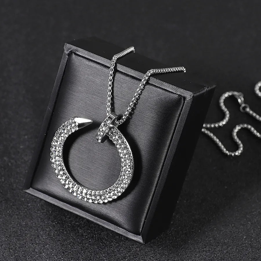 Trendy Long Titanium Steel Nail Necklace Women's Hip Hop Pendant Sweater Chain Full Drill Alloy Geometric Pattern Unisex