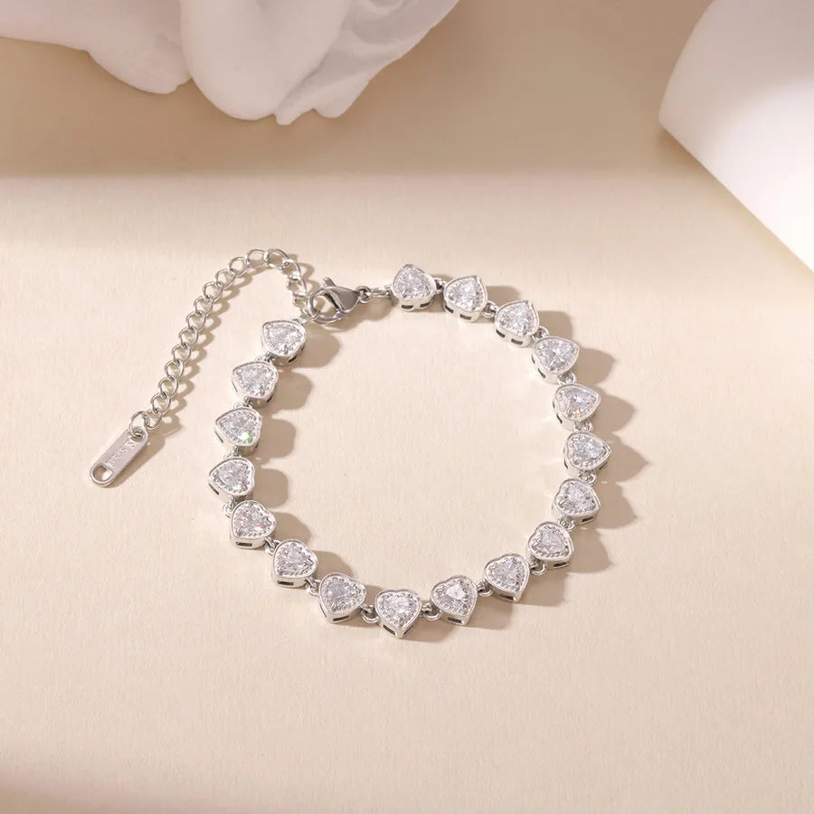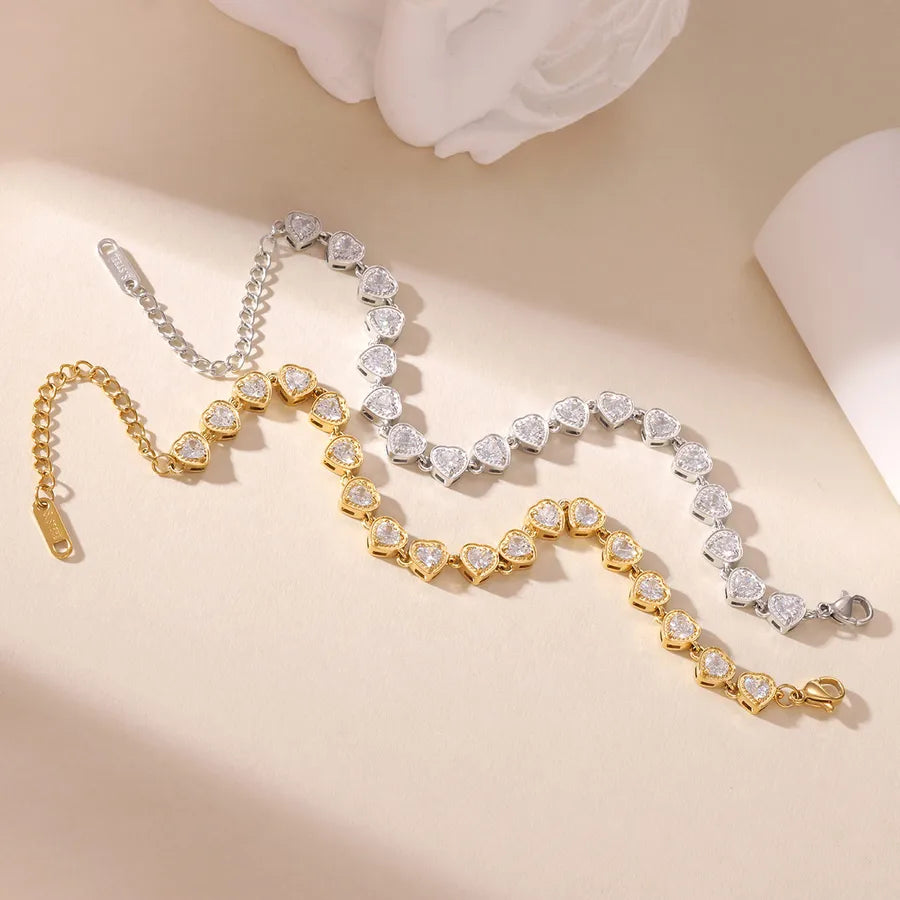 Trendy Titanium Steel Stainless Steel Bracelet With Zircon Heart Shaped Pendant Electroplated Jewelry For Men And Women